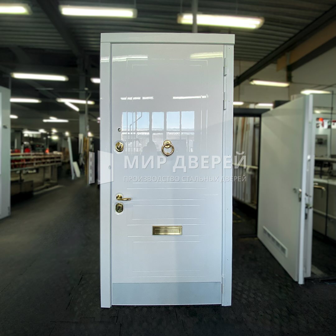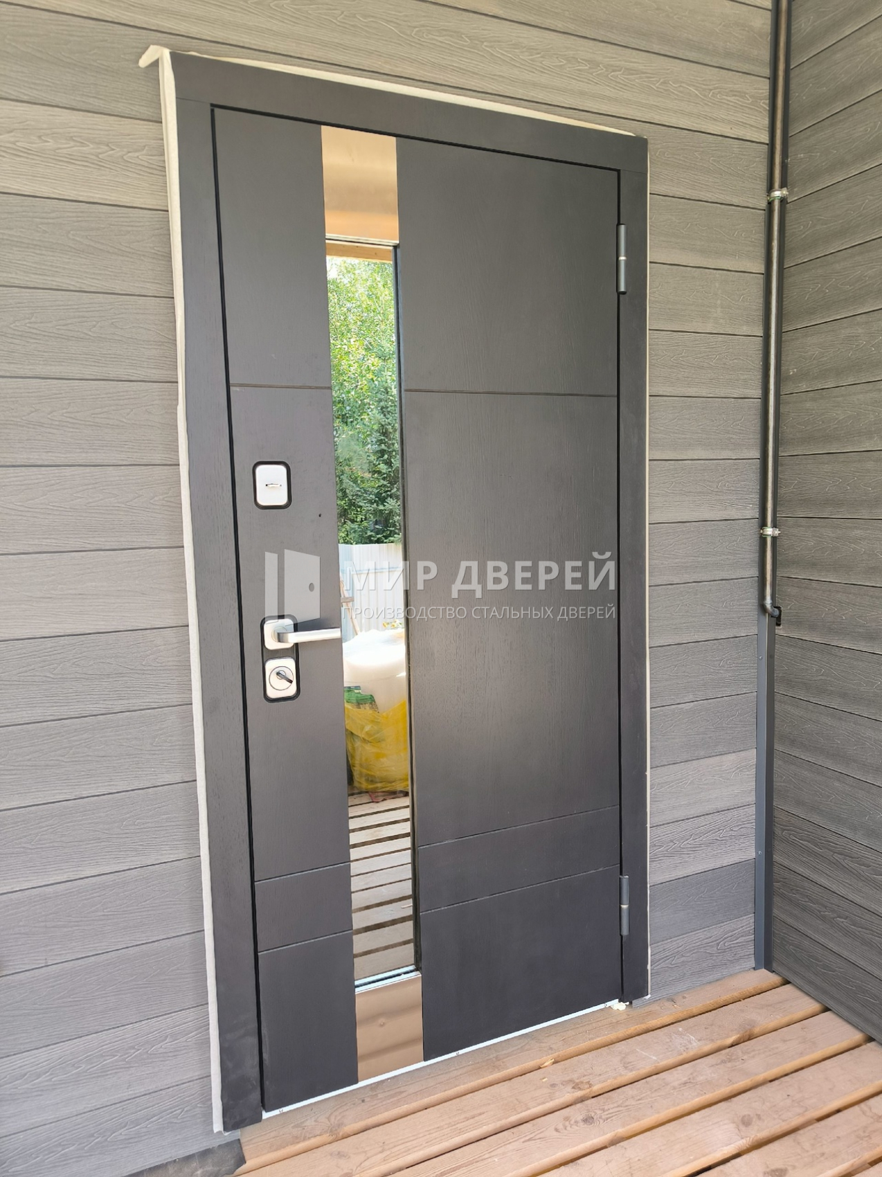 Распашная дверь из шпона с зеркальной вставкой предназначена для установки в частных домах, квартирах и офисах. Внешняя отделка выполнена из МДФ с покрытием шпоном, внутренняя отделка — накладка МДФ. Доступна в белом и светлом цветах и оснащена зеркалом. Размер двери можно выбрать по индивидуальным параметрам (цена при размере 2000x800 мм). Каркас изготовлен из профильной трубы 50x25 мм, полотно двери также состоит из профильных труб с толщиной листа металла 2 мм. Для жесткости предусмотрены профильные трубы 40x25 мм, а блокираторы диаметром 10 мм обеспечивают дополнительную безопасность. Уплотнение выполнено из резины с двумя контурами для лучшей герметичности. Шумо- и теплоизоляция по умолчанию не предусмотрены, но возможна установка минваты или пенопласта по запросу.